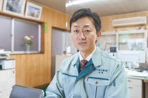 とても元気でパワフルな4代目社長!毎朝日課の愛犬との散歩が元気の秘訣!高菜を愛し、社員を愛する、愛があふれた経営者さんです。