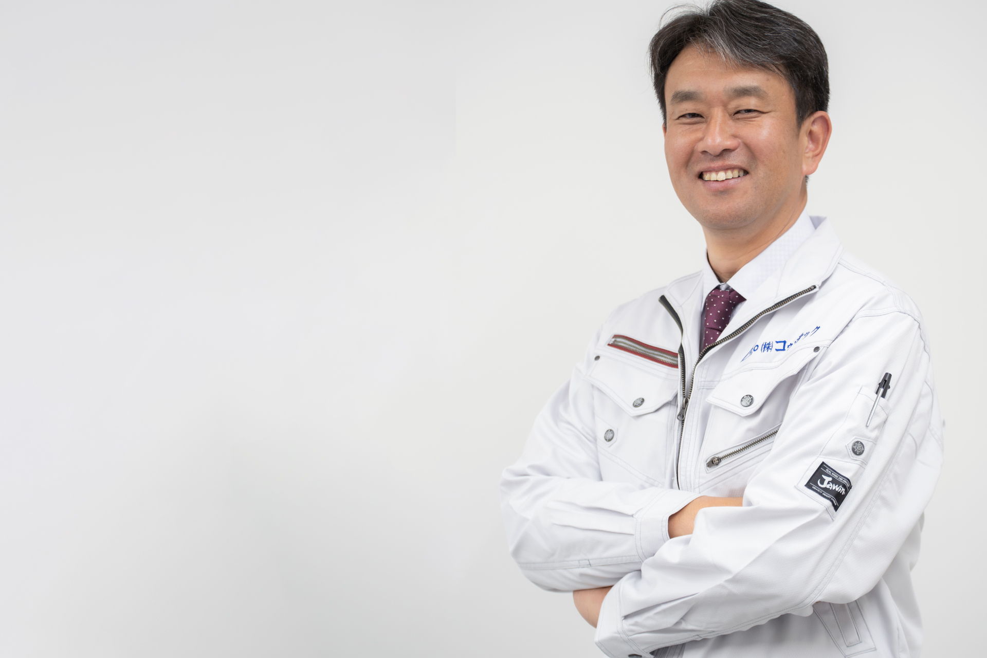 素敵な笑顔に人柄の良さがあふれ出る3代目社長。なんと中学生のころから現場のお手伝いをしていたそうです!休日は奥さまと出掛けることが多い愛妻家。